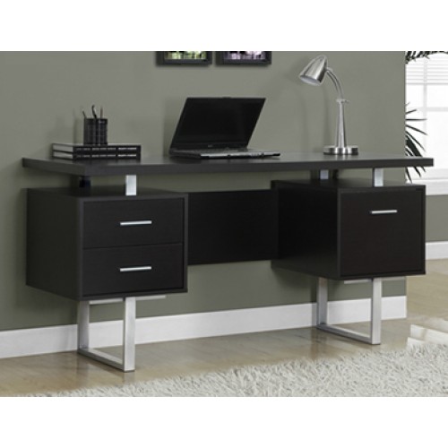 Стіл робочий офісний на металевих опорах (д-150 см, г-60 см, в-75 см) поєднує функціональність, довговічність і сучасний дизайн. Велику робочу стільницю підтримують міцні металеві ніжки, тому стіл гарно виглядає у будь-якому офісі. Дві тумби: в одній — два глибокі ящики для канцелярії, в іншій — високий ящик під файли. Тумби можна розмістити зліва чи справа, а товста стільниця дає достатньо місця для роботи без шкоди для стилю.