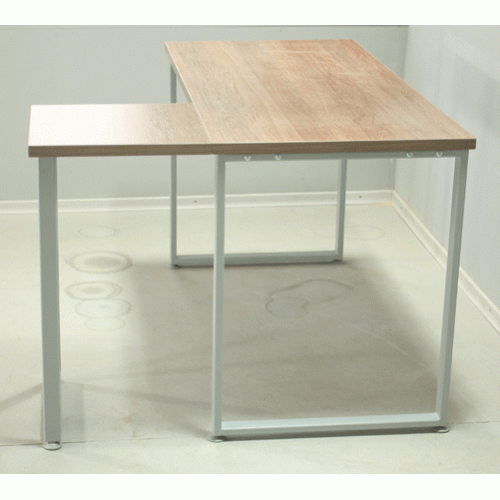 Така конструкція створює дуже жорсткий каркас стола при відкритому просторі під столом і дозволяє використовувати такий безтумбовий універсальний стіл як основний елемент для кутових робочих столів в офісі. На фото — базова модель з розміром стільниці 130×100 см.